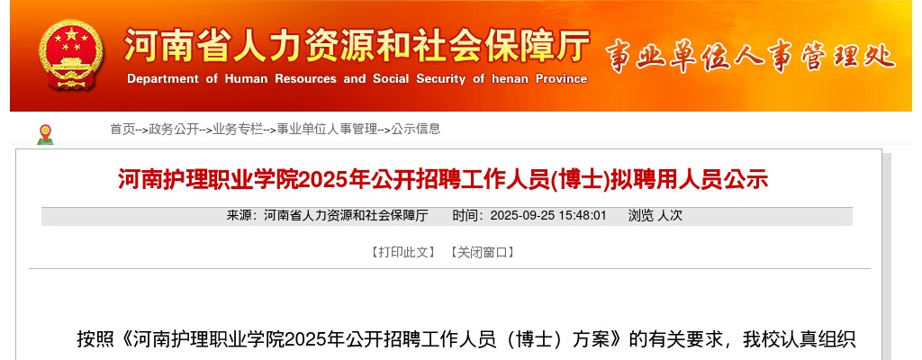 原标题:河南护理职业学院2025年公开招聘工作人员(博士)拟聘用人员公示