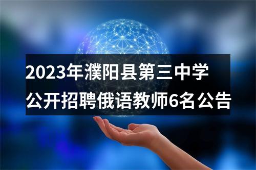 根据《事业单位人事管理条例》(中华人民共和国国务院令第652号)、《河南省事业单位公开招聘工作规程》(豫人社 〔2015〕55号)等有关规定和要求,结合濮阳县第三中学工作需要,经县委、县政府研究,决定面向社会公开招聘俄语教师6名。公告如下: