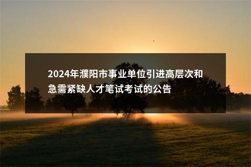 根据《2024年濮阳市事业单位公开引进高层次和急需紧缺人才工作公告》,现就2024年濮阳市事业单位公开引进高层次和急需紧缺人才笔试考试工作公告如下: