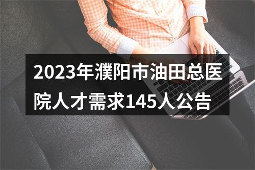 本次招聘人才145人,其中医疗岗位包括特聘专家5人、学术技术带头人10人、学术技术骨干20人、硕士博士研究生110人以及人才团队若干,具体详见附件《濮阳市油田总医院2023年人才需求表》。