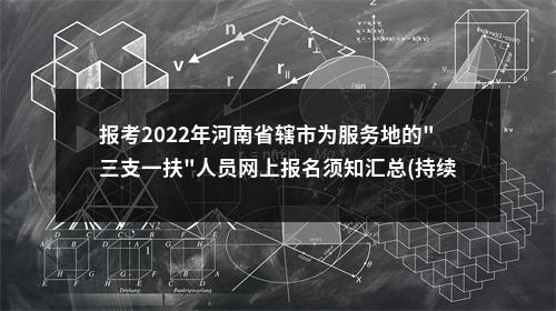 声明:专注 报考2022年河南省辖市为服务地的"三支一扶"人员网上报名须知汇总(持续更新) 相关岗位分析;专业指导面试技巧;保障就业成功概率。